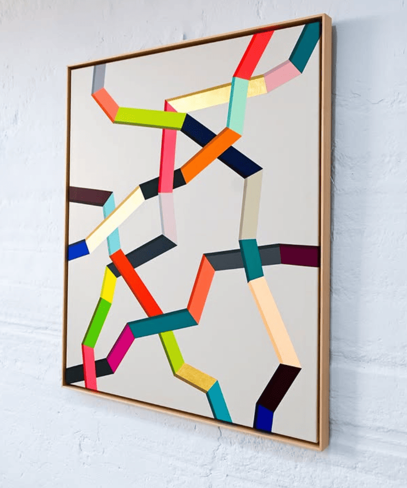 Anita Suárez de Lezo es artista y diseñadora. Tras su experiencia en el mundo de la moda y un máster en diseño gráfico, desarrolló un lenguaje propio influido por la arquitectura y el minimalismo oriental. Su obra, situada entre la pintura y la escultura, se caracteriza por composiciones geométricas, colores vibrantes y una marcada sensación de movimiento. A través del uso de materiales singulares como el espejo o el oro de 24K, sus piezas transmiten vitalidad y optimismo, generando emoción desde la simplicidad de las formas.