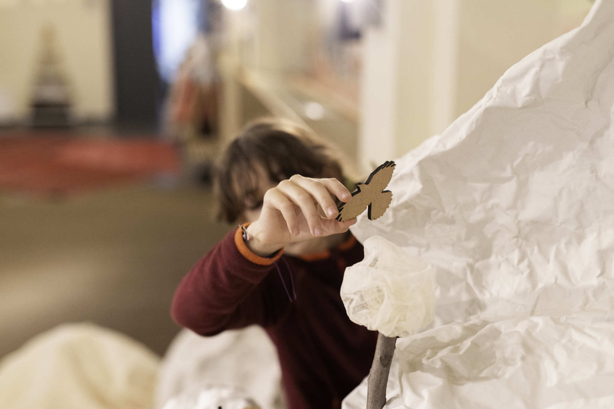 The installation proposes an open creative space where the initial void serves as the starting point for the construction of a landscape. Using a selection of materials, participants collaboratively develop a mountain system with rivers, lakes, meadows, and non-human inhabitants.
