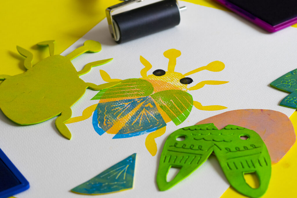 • Estampación con sellos, centrada en la composición y repetición de formas.