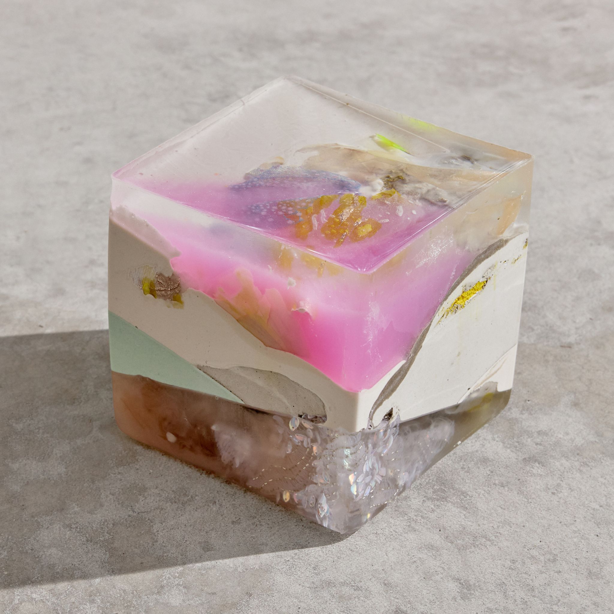 Explores volume, texture, craft, and color through layers of resin, cement, fibers, and pigments. Each piece creates internal landscapes and hybrid forms, inviting slow observation and existing in the space between the solid, the fragile, and the living.