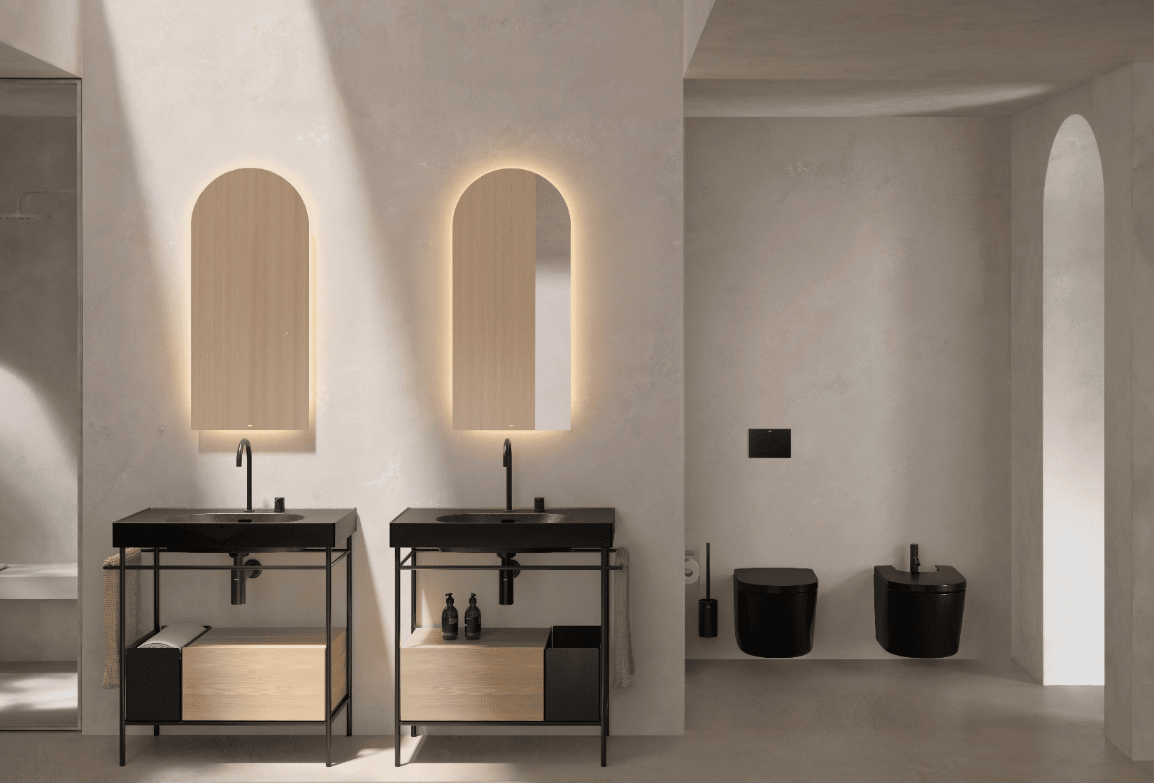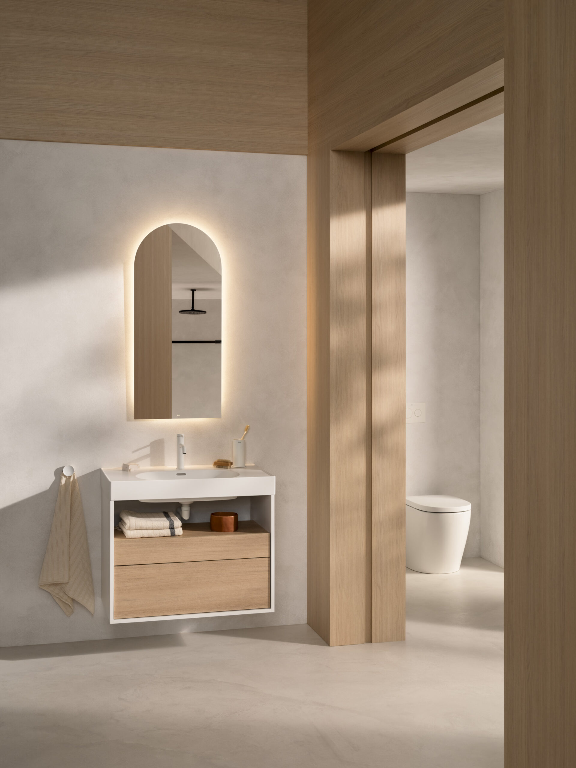 Roca’s Meridian collection serves as the guiding thread of the conversation. Through it, the discussion addresses how a single object can adapt to different spaces and uses, responding to diverse atmospheres without losing its identity. Details, materials and a colour palette inspired by light and shadow highlight the ability of design to articulate both functionality and personal expression.