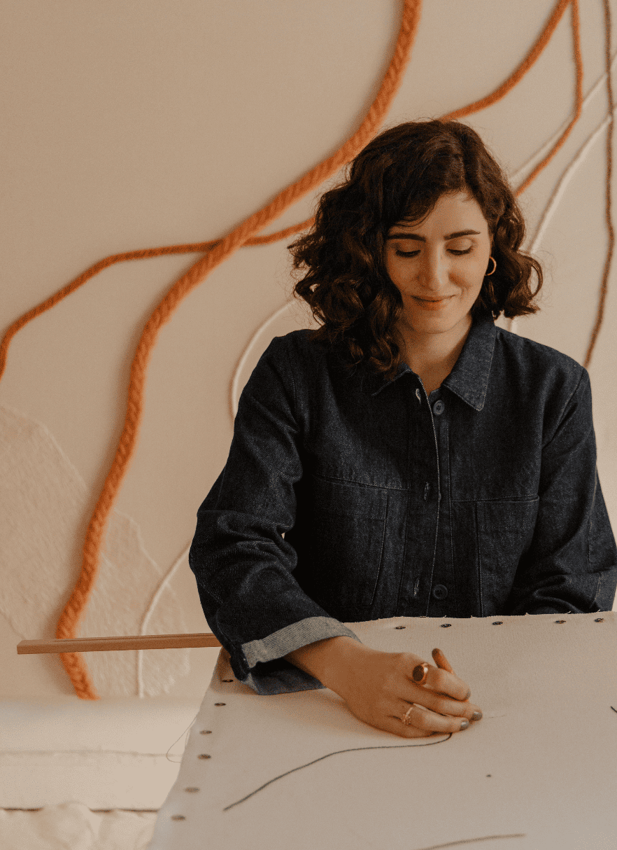 Koral Antolín Maillo (1989) is a multidisciplinary artist trained in Fine Arts who has made textile language her primary form of expression. Working with wool, cotton, and techniques such as embroidery, appliqué, and punch needle, she creates works in which line, texture, and volume build a visual narrative that oscillates between organic abstraction and feminine forms. Her practice combines tradition and experimentation, resulting in unique pieces that evoke curiosity, harmony, and a strong tactile appeal.
