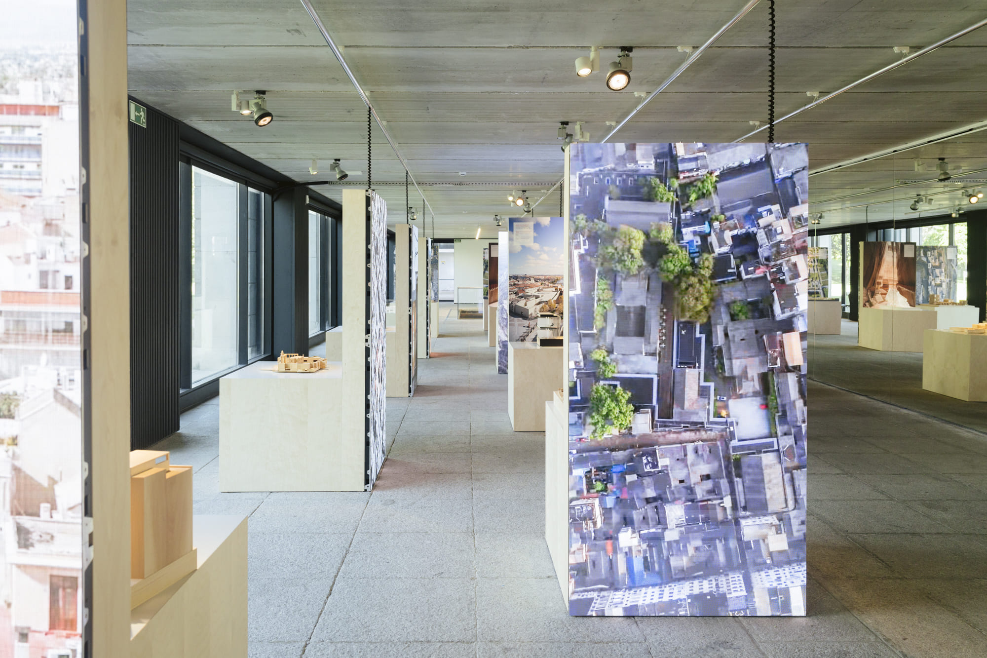 El diseño de la exposición simboliza este diálogo. En la sala de acceso, nos sentamos para mostrar nuestros trabajos y las experiencias compartidas. Las arquitectas y arquitectos explican lo que han hecho en un paisaje común, en el que las obras de los dos países se entremezclan con quienes nos visitan en un gran espejo que multiplica la sinergia de nuestras relaciones.