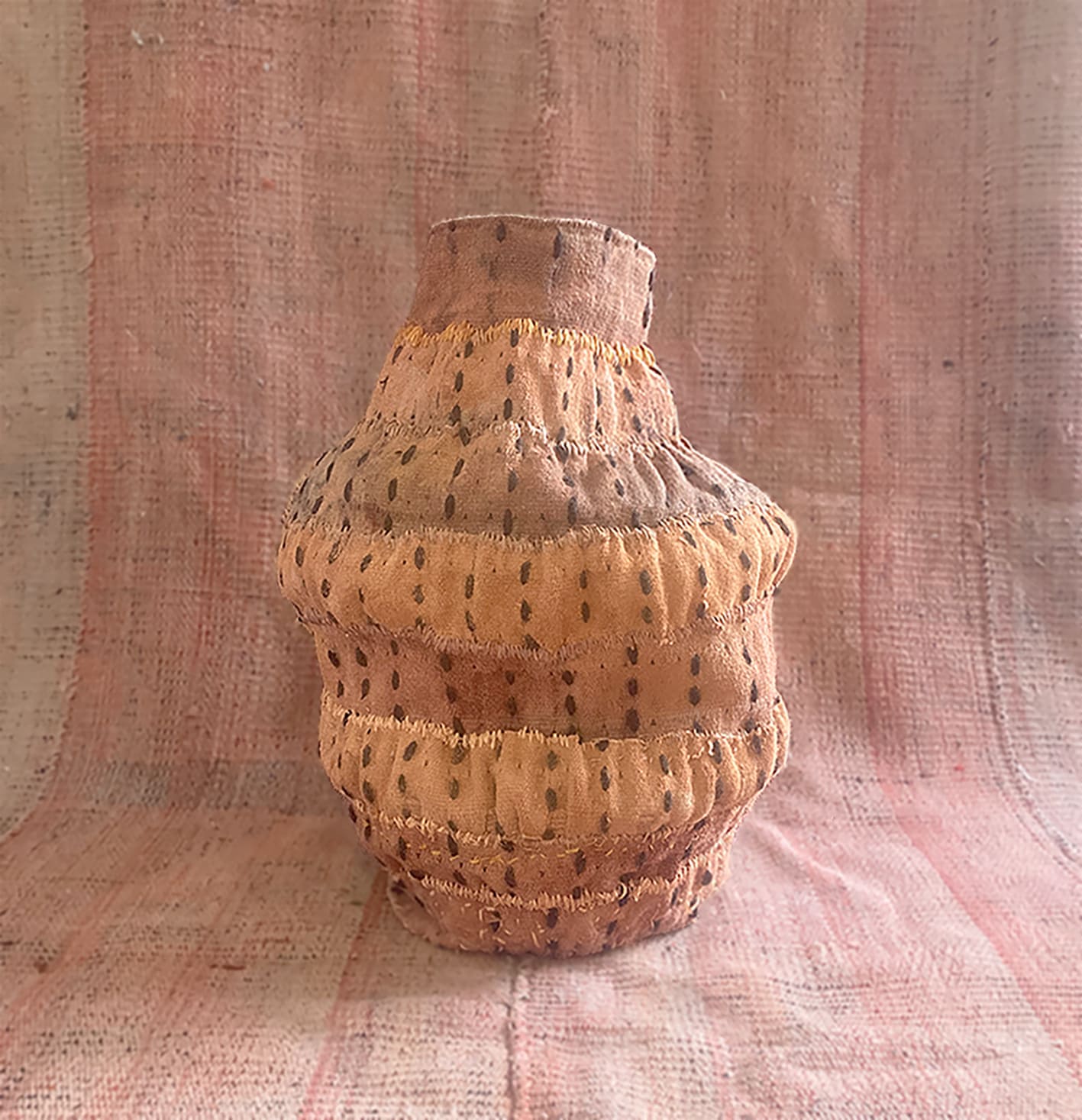 La exposición comisariada por Marta Valea, de la galería Caotics, rescata la inspiración del arte fenicio y la traduce al lenguaje contemporáneo del diseño y los bordados. Presenta dos colecciones complementarias: vasijas textiles elaboradas con restos de dos de las premiadas colecciones bordadas por Gan Women Unit para la marca del grupo Gan Rugs, y la colección de joyería contemporánea Phoenix. Ambas son interpretadas por mujeres creadoras, que muestran la transformación del material, la memoria del gesto y el dialogo entre tradición y modernidad.