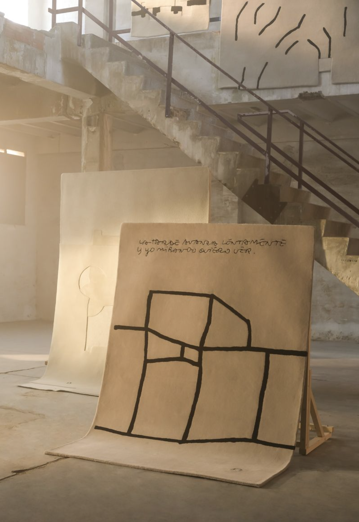 Within this spirit emerges the Chillida collection, bringing together compositions such as Figura Humana, Tinta, and the Gravitaciones, reinterpreted through fibers and textures that echo his play of light and void. The series also includes Preguntas, inspired by the aphorisms the creator shared at the Royal Academy of San Fernando.